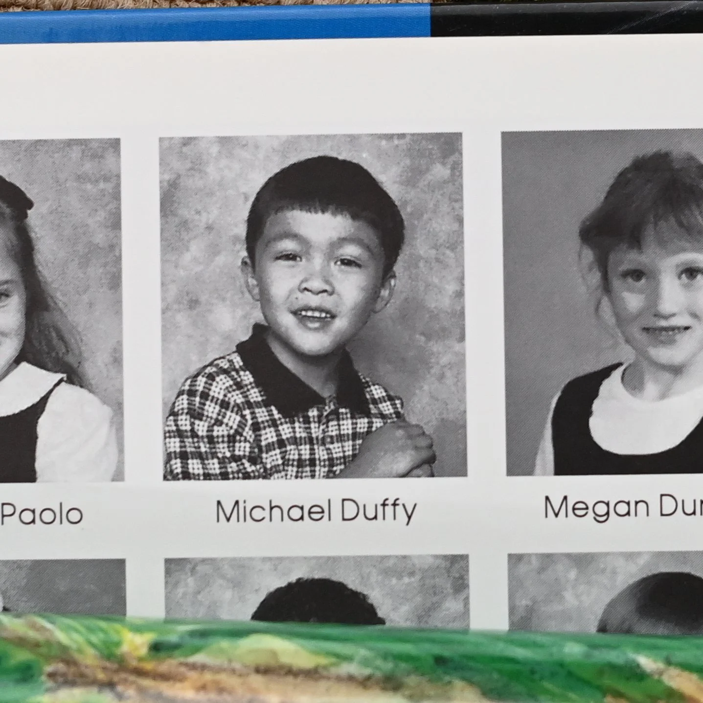 Mikey mostly stayed cool and mysterious in the background a grade above (just kidding — he was always loudly up to something. Also look how cute his little bowl cut was).